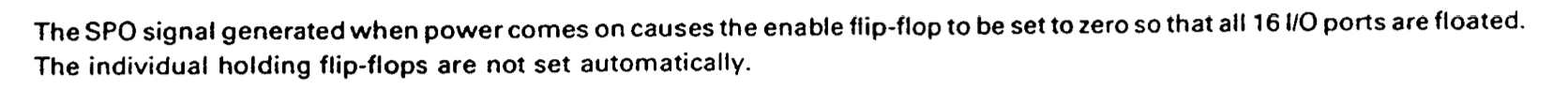 In an A17 component, the I/O subsection is identified by a number that is coded inside it. Possible values are 0, 2, 4, or 6. This values are not defined by pure accident: As a matter of fact, for example, a GPKD device (PPS4/2, anterior to the PPS4/2s components) #10788 can also been selected through the same mechanism. But for this chip there are only 3 straps, SC5, SC6, and SC7 that are compared to I/D5..7. The chip is only selected if straps match and I/D8 is at logic "true". Then 8 10788 can be separately selected in a design, without complexity. So, 0, 2, 4, 6 are the only free values that will avoid any confusion with other previous component, defined earlier.